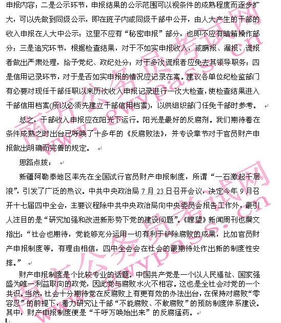 新疆阿勒泰地区于今年元月初一率先在全国试行官员财产申报制度,把过去通行的官员“收入申报”扩大为“财产申报”,近又闻即将在金秋十月召开党的十七届四中全会,要把官员财产申报制度作为新的制度性安排,以满足广大人民对反对官员腐败的新期待。