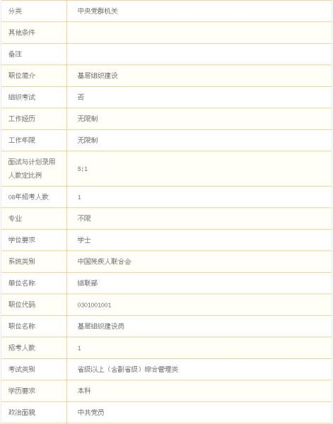 2009年国家公务员考试竞争比例最高的职位是中国残疾人联合会组联部基层组织建设岗职位的4723:1
