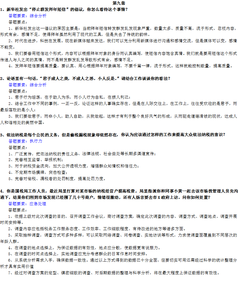 国考面试常见问题及精准答题要点解析(第九套)