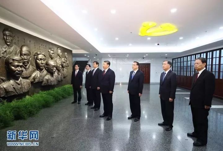 10月31日上午,党的十九大闭幕仅一周,习近平和李克强、栗战书、汪洋、王沪宁、赵乐际、韩正,从北京乘专机来到上海,到兴业路76号集体瞻仰中共一大会址。新华社记者 兰红光 摄