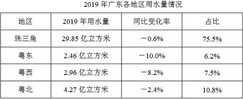 97.与2018年相比,2019年广东规模以上工业企业用水量: