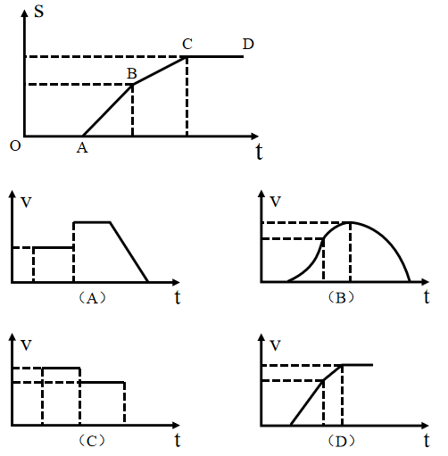 84.如图所示是一辆公交车在平直道路上行驶的位移(s)与时间(t)图像,则下列选项中最能准确反映公交车速度(v)与时间(t)图像的是( )。