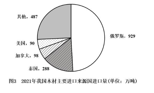 124.2021年,自俄罗斯进口的木材占当年木材进口总量的比重约比美国高多少个百分点?