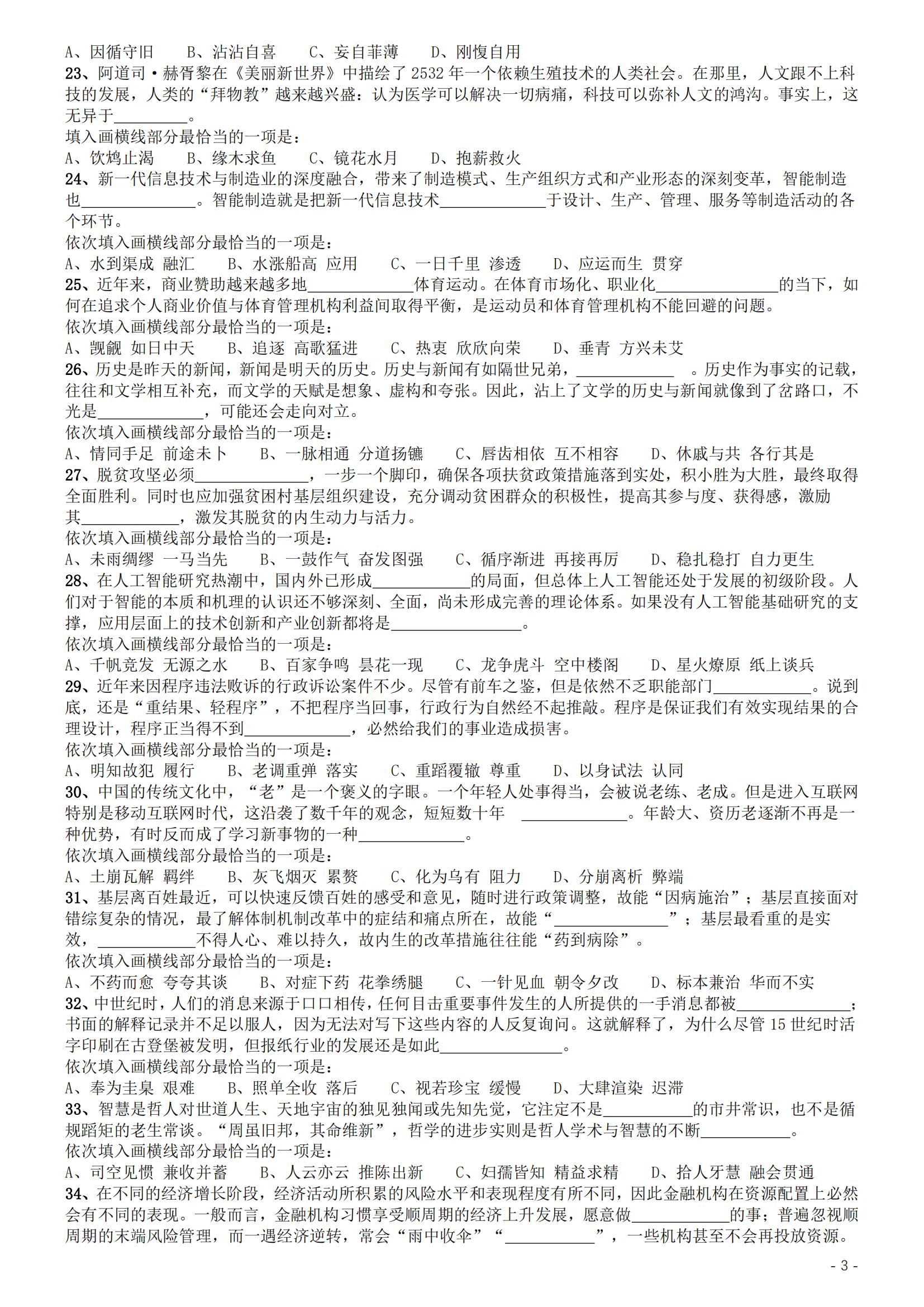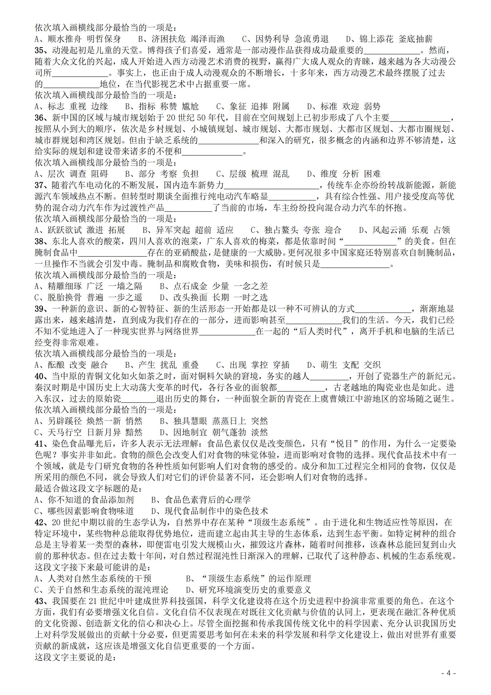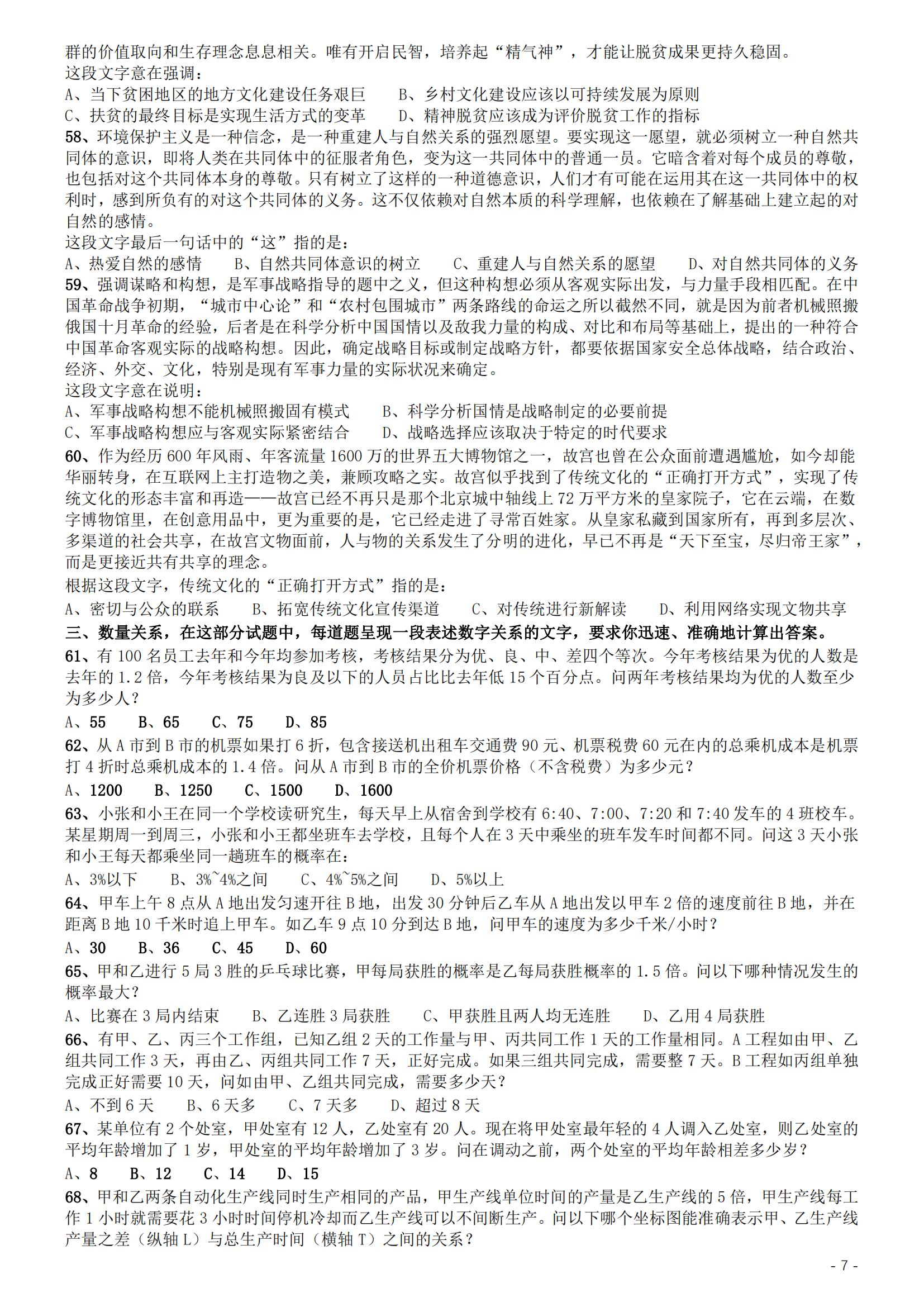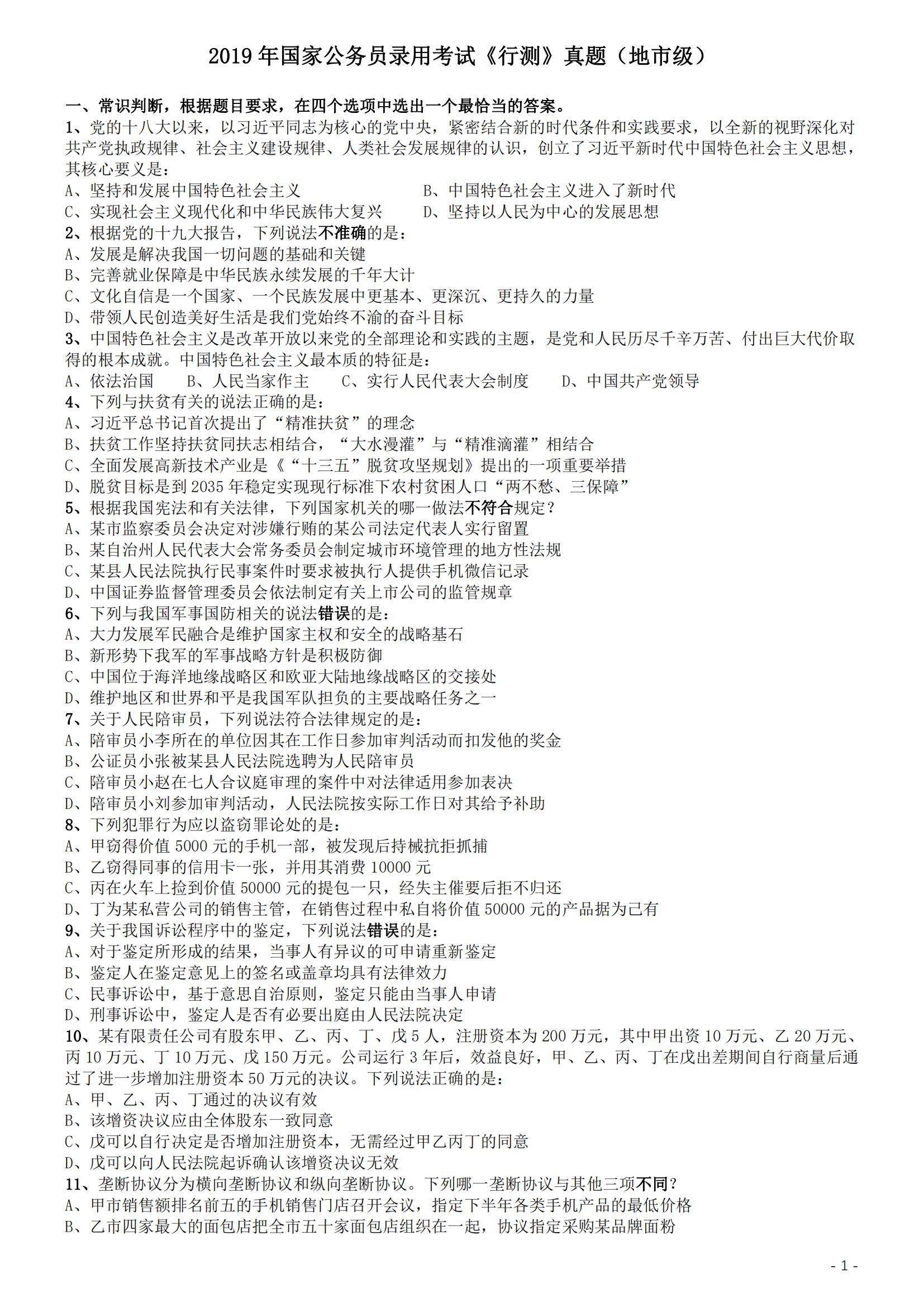 2019年国家公务员考试《行测》真题(地市级)
